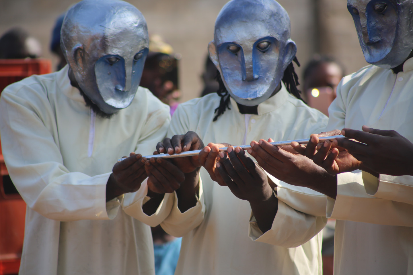 The final outcome of the residency was a street theatre performance, which was performed in public spaces across three Cameroonian cities: Yaoundé, Ebolowa and Obala.